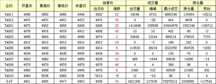 主力TA001合約當日交易走勢