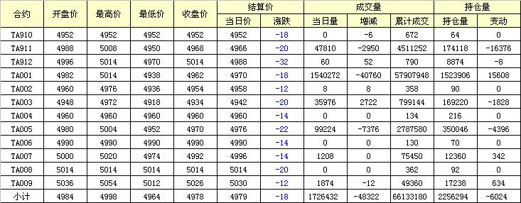 主力TA001合約當(dāng)日交易走勢