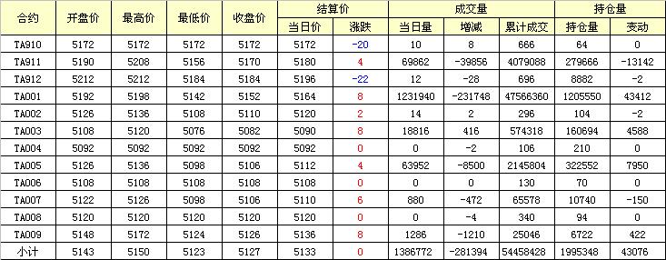 主力TA001合約當(dāng)日交易走勢