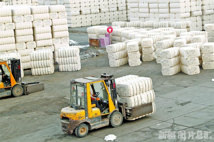 11月21日,工人在自治區(qū)棉麻公司烏魯木齊棉麻站轉(zhuǎn)運(yùn)棉花。截至目前,烏魯木齊棉麻站出疆棉花已達(dá)8798噸。