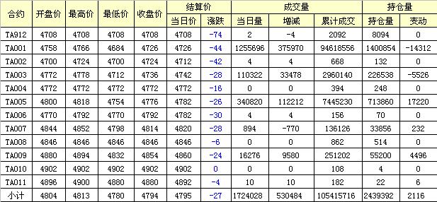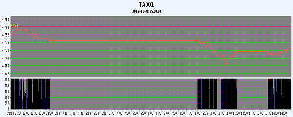主力TA001合約當日交易走勢
