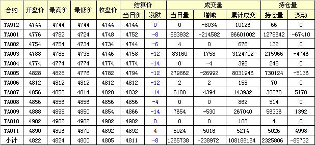 主力TA001合約當(dāng)日交易走勢(shì)