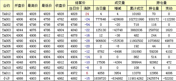 主力TA001合約當(dāng)日交易走勢