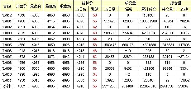 主力TA001合約當(dāng)日交易走勢