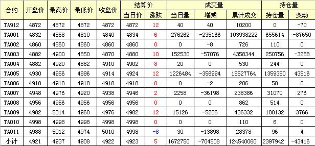 主力TA005合約當日交易走勢