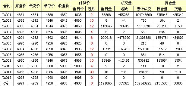 主力TA005合約當(dāng)日交易走勢(shì)