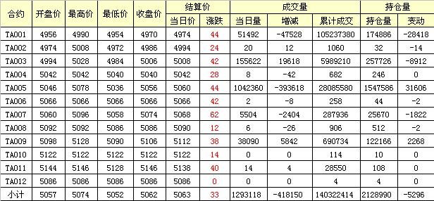 主力TA005合約當(dāng)日交易走勢(shì)