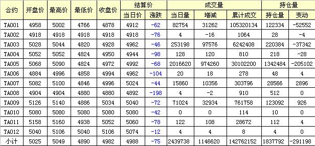 主力TA005合約當(dāng)日交易走勢(shì)