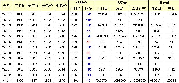 主力TA005合約當(dāng)日交易走勢(shì)