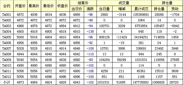 主力TA005合約當(dāng)日交易走勢(shì)