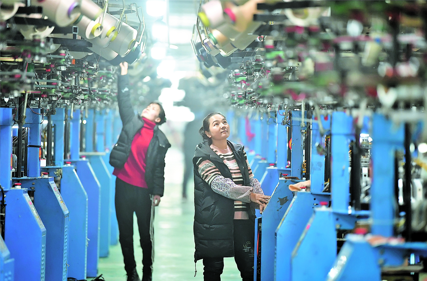 2019年12月17日,村民在阿瓦提縣產(chǎn)業(yè)園一家紡織企業(yè)工作。該產(chǎn)業(yè)園首期建成后已有15家企業(yè)入駐,累計(jì)帶動(dòng)200余名農(nóng)村富余勞動(dòng)力就業(yè)增收,其中貧困村民80多人。