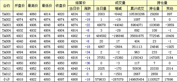 主力TA005合約當(dāng)日交易走勢