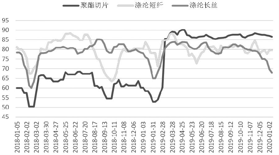圖為聚酯各品種周度開工率(單位:%)