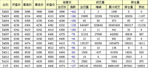 主力TA005合約當(dāng)日交易走勢