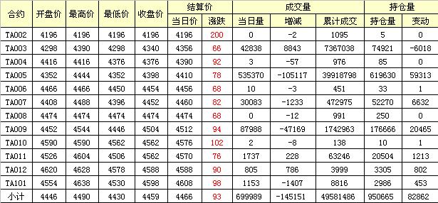 主力TA005合約當(dāng)日交易走勢