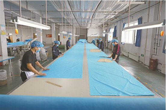 2月6日,新疆芳婷針紡織有限責(zé)任公司工人正加緊生產(chǎn)隔離衣。2月4日,芳婷針紡織有限責(zé)任公司接到15天內(nèi)趕制3萬余套隔離衣的任務(wù)后,于當(dāng)天20時(shí)組織工人開始生產(chǎn),只用36個(gè)小時(shí),便生產(chǎn)出首批2150套隔離衣,經(jīng)過消毒、包裝后運(yùn)往抗擊疫情第一線。
