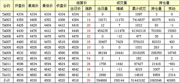 主力TA005合約當日交易走勢