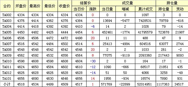主力TA005合約當(dāng)日交易走勢