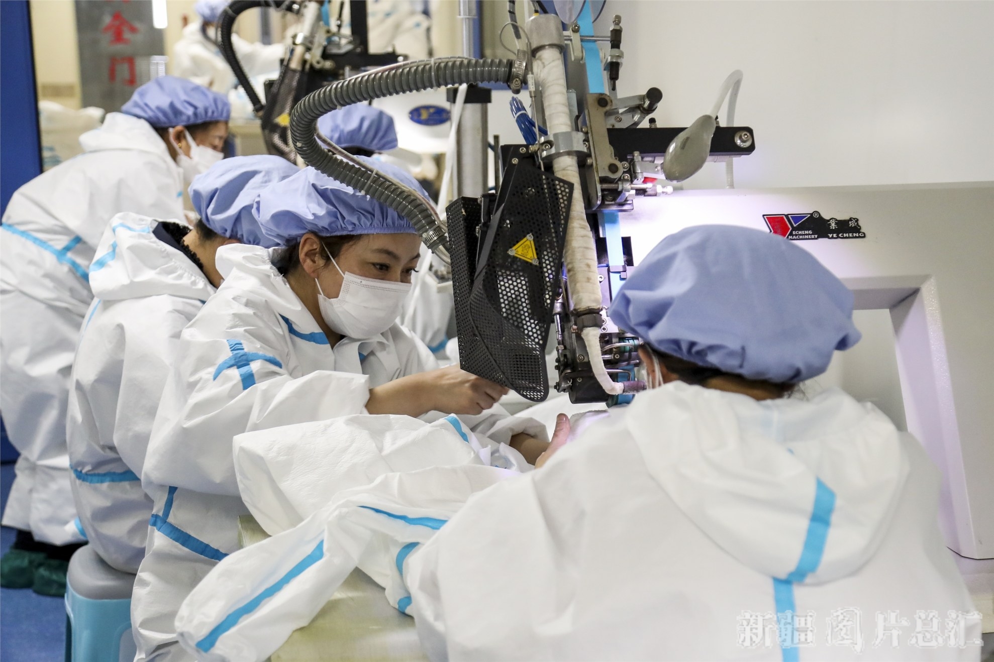 2月12日,在烏魯木齊高新技術(shù)產(chǎn)業(yè)開發(fā)區(qū)(新市區(qū))工業(yè)園的新疆特豐藥業(yè)股份有限公司無菌車間,工人們正在上料、裁剪、縫制……伴隨著機(jī)器的嗡鳴聲,一件件藍(lán)白相間的醫(yī)用防護(hù)服,在生產(chǎn)線上流轉(zhuǎn)。從開建生產(chǎn)線到防護(hù)服下線,僅用38小時(shí)。