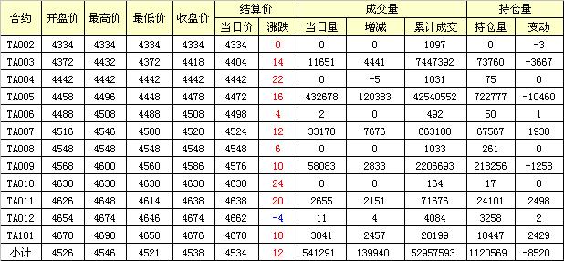主力TA005合約當(dāng)日交易走勢(shì)
