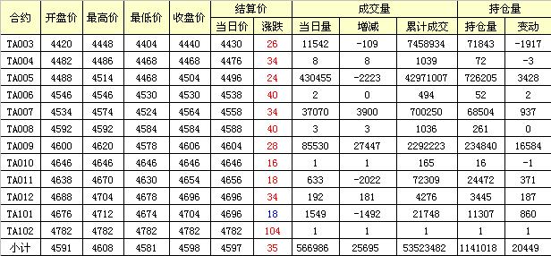 主力TA005合約當(dāng)日交易走勢