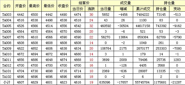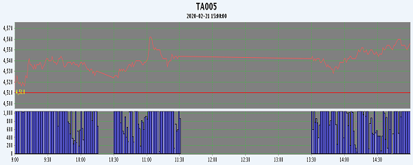 主力TA005合約當(dāng)日交易走勢(shì)
