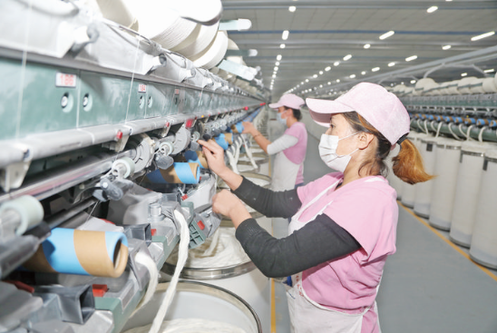 2月24日,阿克蘇新爵紡織有限責(zé)任公司的工人在生產(chǎn)線上忙碌。在嚴(yán)格落實(shí)疫情防控工作前提下,該公司陸續(xù)復(fù)工復(fù)產(chǎn),目前工人已全部到崗。