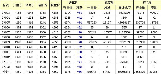 主力TA005合約當(dāng)日交易走勢(shì)