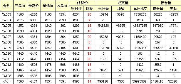 主力TA005合約當(dāng)日交易走勢(shì)