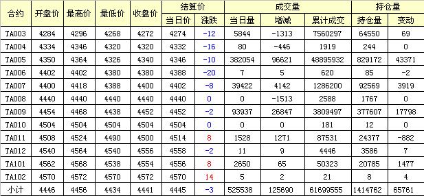 主力TA005合約當(dāng)日交易走勢(shì)