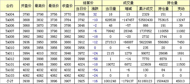 主力TA005合約當(dāng)日交易走勢(shì)