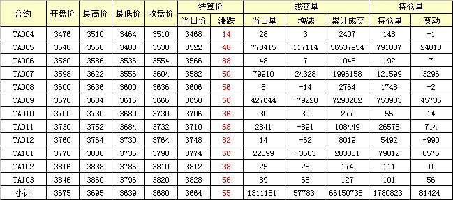 主力TA005合約當(dāng)日交易走勢(shì)