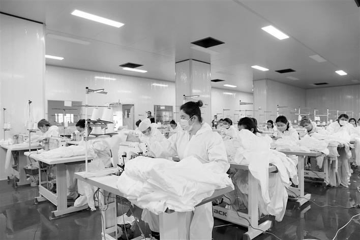 3月22日,五團(tuán)沙河鎮(zhèn)產(chǎn)城融合區(qū)5號(hào)廠房新疆尚青醫(yī)療器械有限公司內(nèi),工人們加緊生產(chǎn)防護(hù)服。該公司于今年2月建成,擁有全自動(dòng)口罩生產(chǎn)包裝流水線、防護(hù)服生產(chǎn)線,日產(chǎn)10萬只口罩、1000套防護(hù)服,可帶動(dòng)當(dāng)?shù)?0余名勞動(dòng)力實(shí)現(xiàn)就業(yè)。