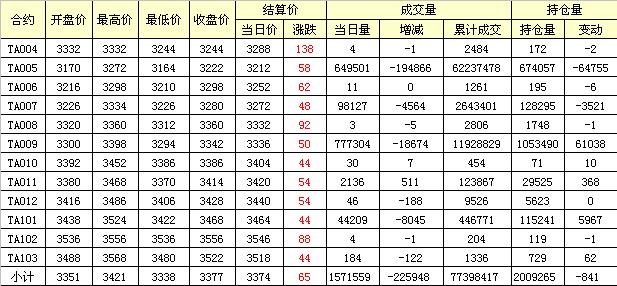 主力TA005合約當(dāng)日交易走勢