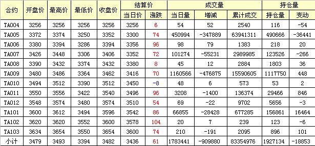 主力TA005合約當(dāng)日交易走勢(shì)