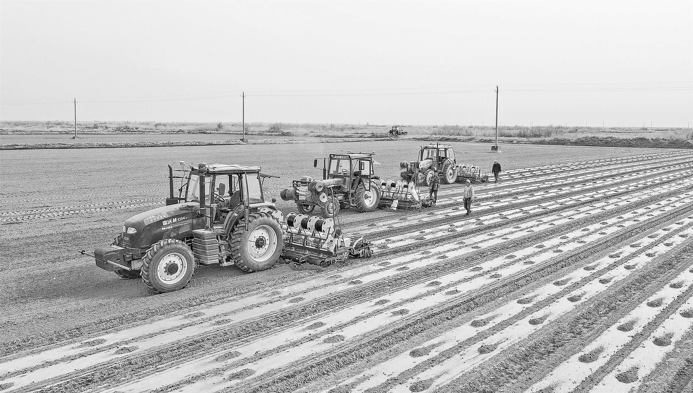 4月1日,無人駕駛衛(wèi)星導(dǎo)航播種機(jī)在庫(kù)車市塔里木鄉(xiāng)播種棉花。今年,塔里木鄉(xiāng)采用智慧農(nóng)機(jī)播種模式,提升春播效率。