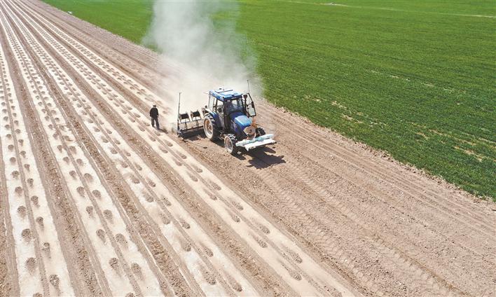 4月13日,六師共青團(tuán)農(nóng)場四連職工駕駛播種機(jī)播種棉花。近日,共青團(tuán)農(nóng)場職工群眾搶抓氣溫回升、土壤墑情好的有利時(shí)機(jī)播種棉花。