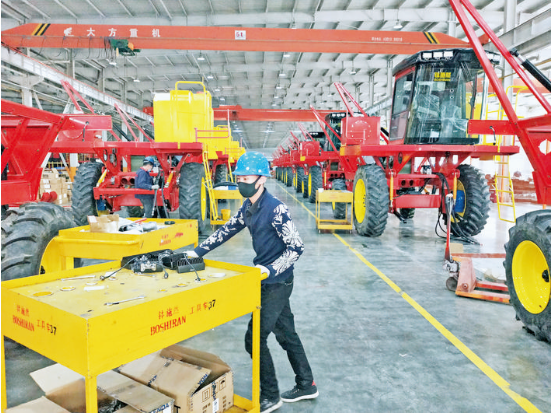 4月17日,沙雅缽施然智能農(nóng)機(jī)有限公司工人正在加緊生產(chǎn)采棉機(jī)。據(jù)了解,公司是國內(nèi)目前生產(chǎn)規(guī)模最大的采棉機(jī)制造企業(yè),近期在做好新冠肺炎疫情防控基礎(chǔ)上全面復(fù)工復(fù)產(chǎn),正開足馬力忙生產(chǎn),確保實(shí)現(xiàn)全年目標(biāo)任務(wù)。