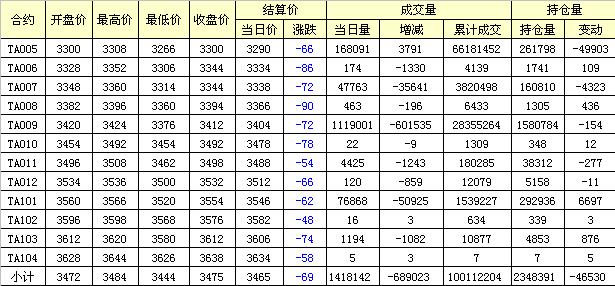 主力TA009合約當(dāng)日交易走勢