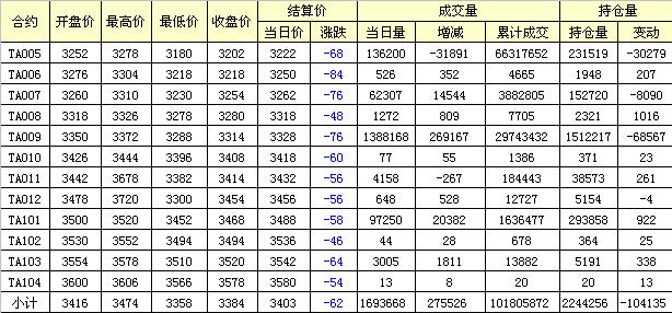 主力TA009合約當(dāng)日交易走勢