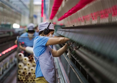 4月19日,昌吉溢達(dá)紡織有限公司工人在紡紗智能化生產(chǎn)線上工作。據(jù)了解,公司智能化紡紗示范車(chē)間采用全球最先進(jìn)生產(chǎn)線,設(shè)備自動(dòng)化率超過(guò)90%。