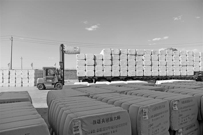 4月21日在六師新湖農(nóng)場招商引資企業(yè)新疆溫貿(mào)華域棉業(yè)有限公司廠區(qū)內(nèi),工人在裝運(yùn)皮棉,這些皮棉將運(yùn)送到浙江、河南、山東等地的紡織廠。企業(yè)復(fù)工復(fù)產(chǎn)以來,開足馬力加工剩余籽棉,并加快銷售。