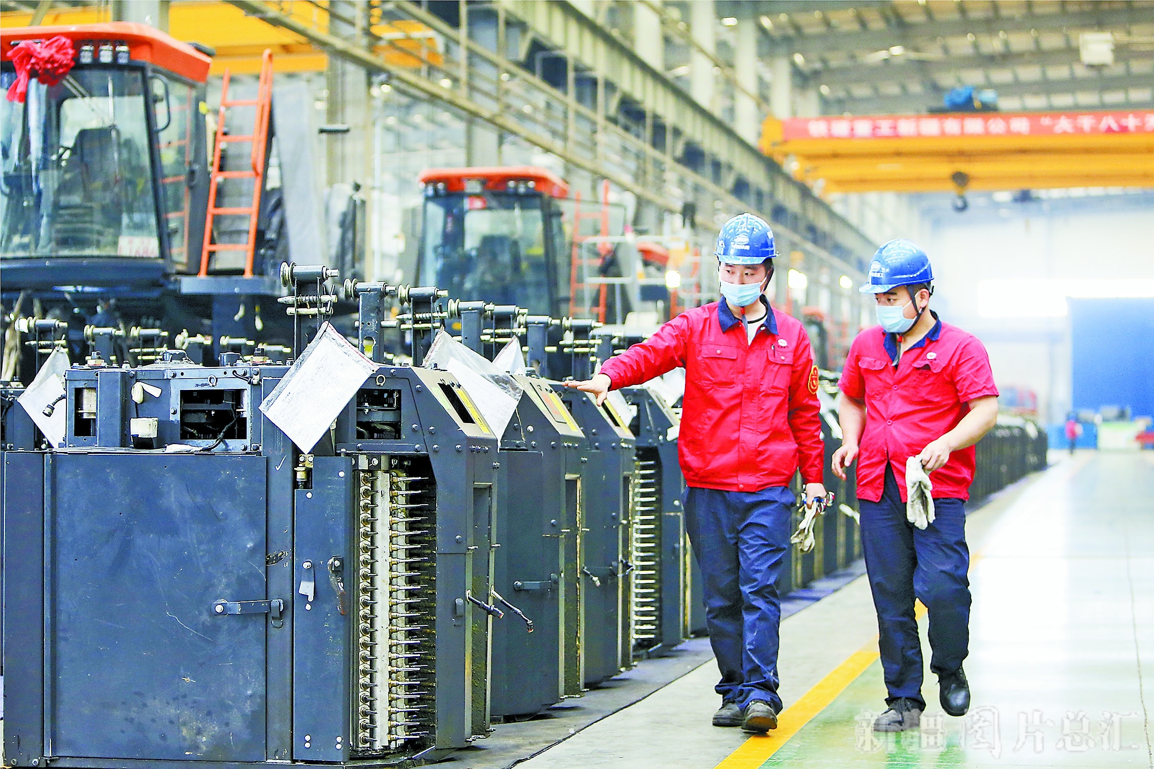 4月30日,工人在鐵建重工新疆有限公司采棉機裝配車間作業(yè)。目前,在自治區(qū)及烏魯木齊市各項政策的扶持下,該企業(yè)正開足馬力加快生產(chǎn)。