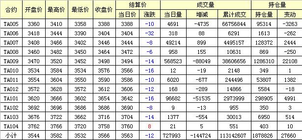 主力TA009合約當(dāng)日交易走勢(shì)