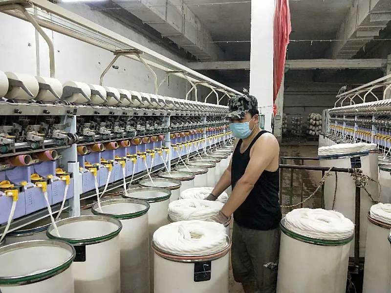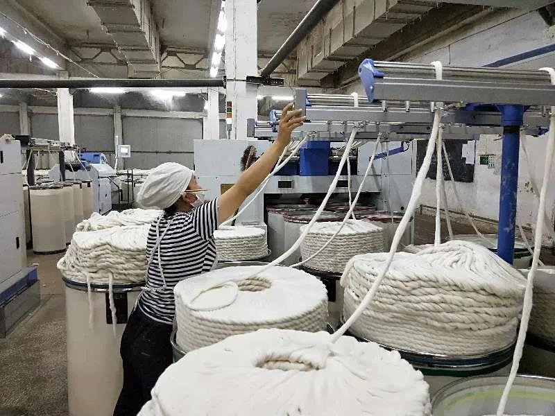 車間負(fù)責(zé)人張建設(shè)說:“我們主要生產(chǎn)‘OE21支棉紗’,年加工棉紗3600噸,現(xiàn)在每天加工棉紗10噸左右。”