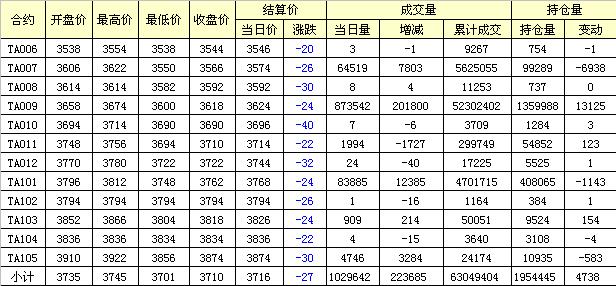主力TA009合約當(dāng)日交易走勢(shì)