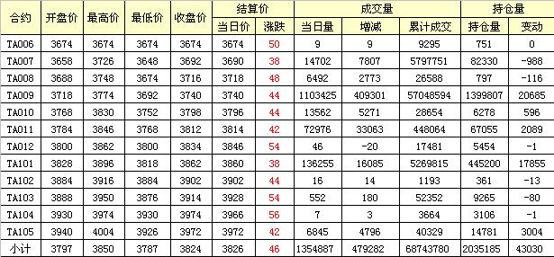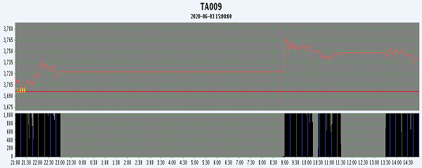 主力TA009合約當日交易走勢