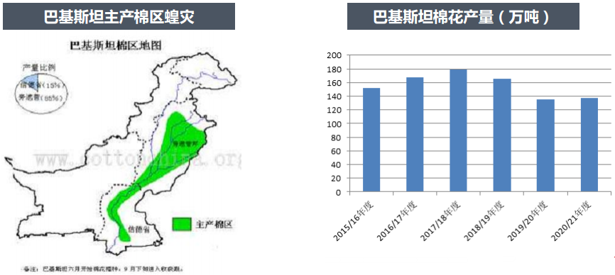 從分布區(qū)域看,目前印巴地區(qū)蝗災(zāi)與棉花分布區(qū)域重合度較高,所到之地均為棉區(qū),其中巴基斯坦尤為嚴(yán)重。印度目前受災(zāi)最嚴(yán)重的拉賈斯坦邦產(chǎn)量占印度總產(chǎn)的10%左右;巴基斯坦更為嚴(yán)重,兩大主產(chǎn)棉區(qū)旁遮普和信德省均為蝗災(zāi)重災(zāi)區(qū)。