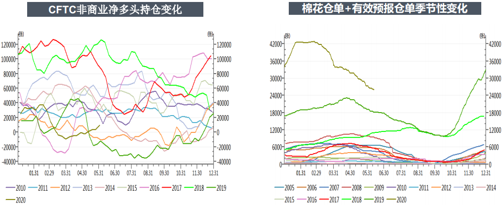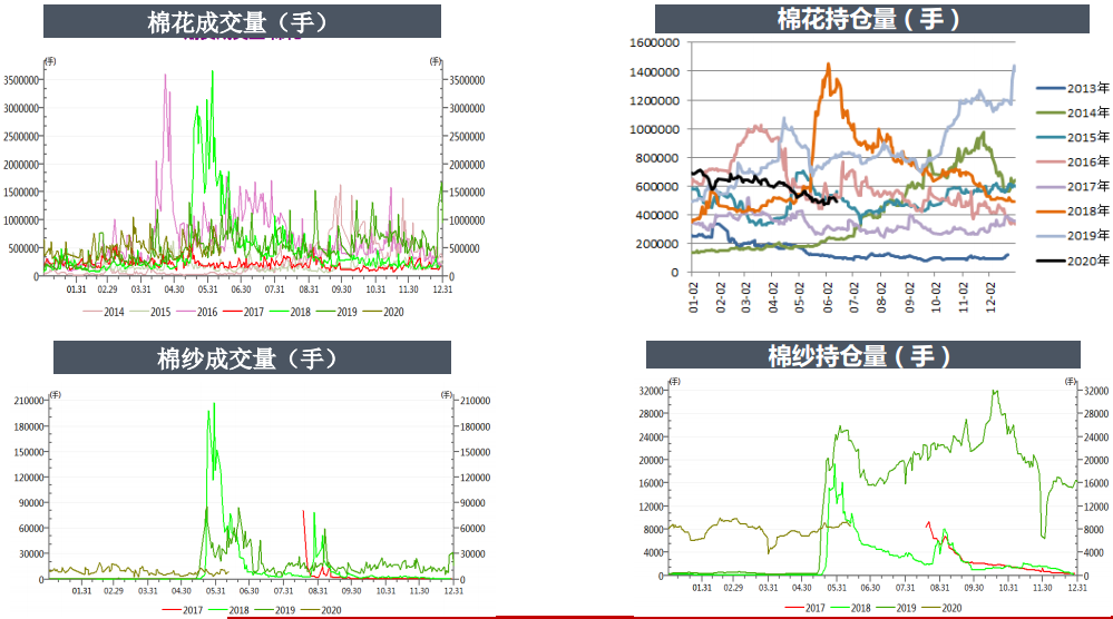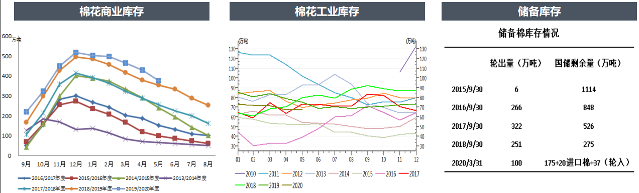 國(guó)內(nèi)棉花已連續(xù)幾年降庫(kù)存,目前庫(kù)存已下降到一個(gè)相對(duì)合理且較低的位置。從未來一段時(shí)間供需角度看,棉花保持近幾年供應(yīng)充足常態(tài),本年度在新花上市前供應(yīng)充足。新花播種面積雖有下降,目前看影響不大,但未來產(chǎn)量如何還得天氣和蟲害等因素影響。需求方面,國(guó)內(nèi)消費(fèi)4月數(shù)據(jù)開始好轉(zhuǎn),預(yù)計(jì)5月數(shù)據(jù)將繼續(xù)好轉(zhuǎn),出口方面預(yù)計(jì)要等到下半年甚至第4季度數(shù)據(jù)才會(huì)逐漸出現(xiàn)好轉(zhuǎn)。整體消費(fèi)雖在逐步恢復(fù),但仍是不如往年同期,全球疫情可能將帶來新一輪爆發(fā)。短期內(nèi)下游消費(fèi)有短暫性好轉(zhuǎn),印巴蝗災(zāi)及美國(guó)主產(chǎn)區(qū)得州干旱將支撐市場(chǎng)行情。