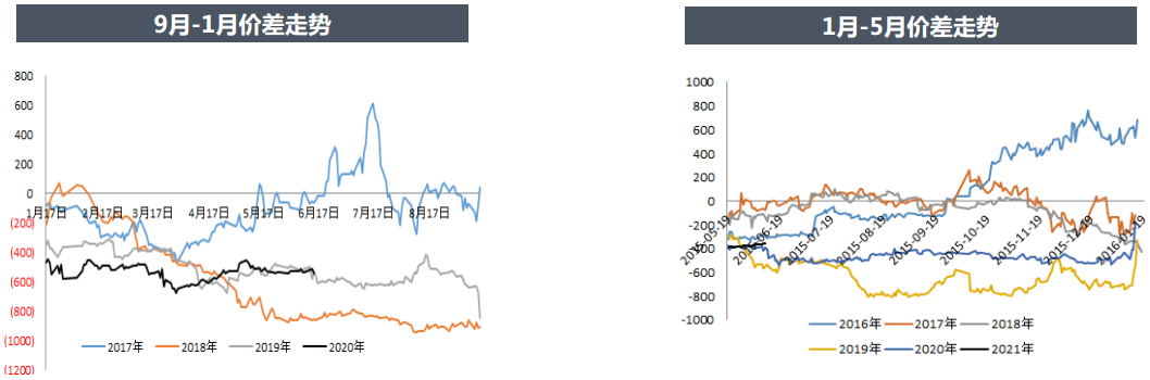 9-1價(jià)差近期持續(xù)回落,但是考慮未來遠(yuǎn)月疫情影響相對(duì)較小且消費(fèi)可能恢復(fù),因此遠(yuǎn)月的想象空間更大,可以考慮在低點(diǎn)做大價(jià)差。